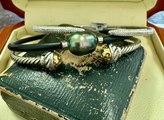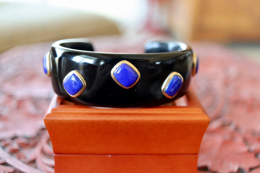 Vintage Black Onyx Bracelet with Lapis and 14k