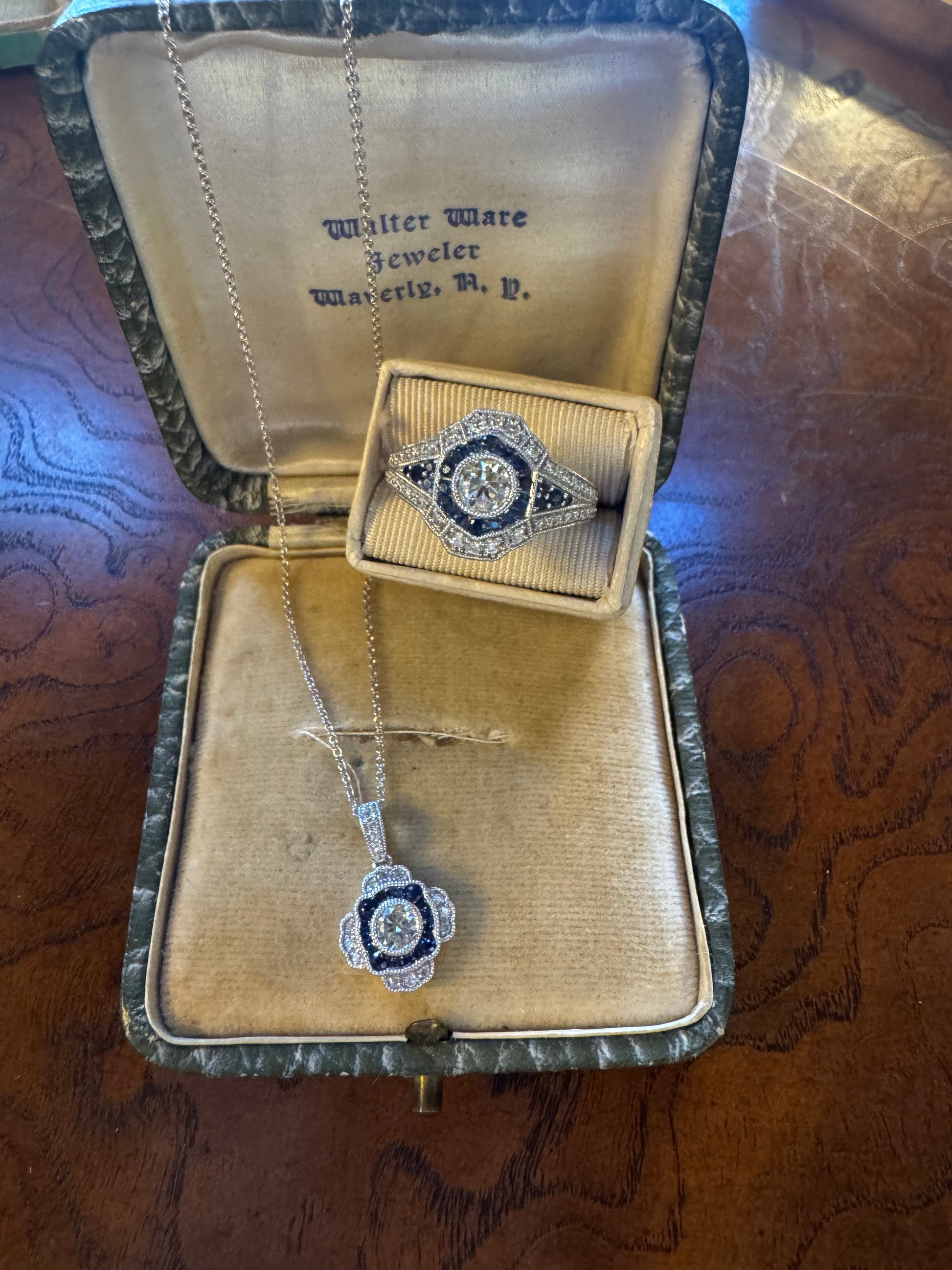 14k antique style ring .65cts of Diamonds and .35cts of Sapphires. 14k white gold size 7 R61