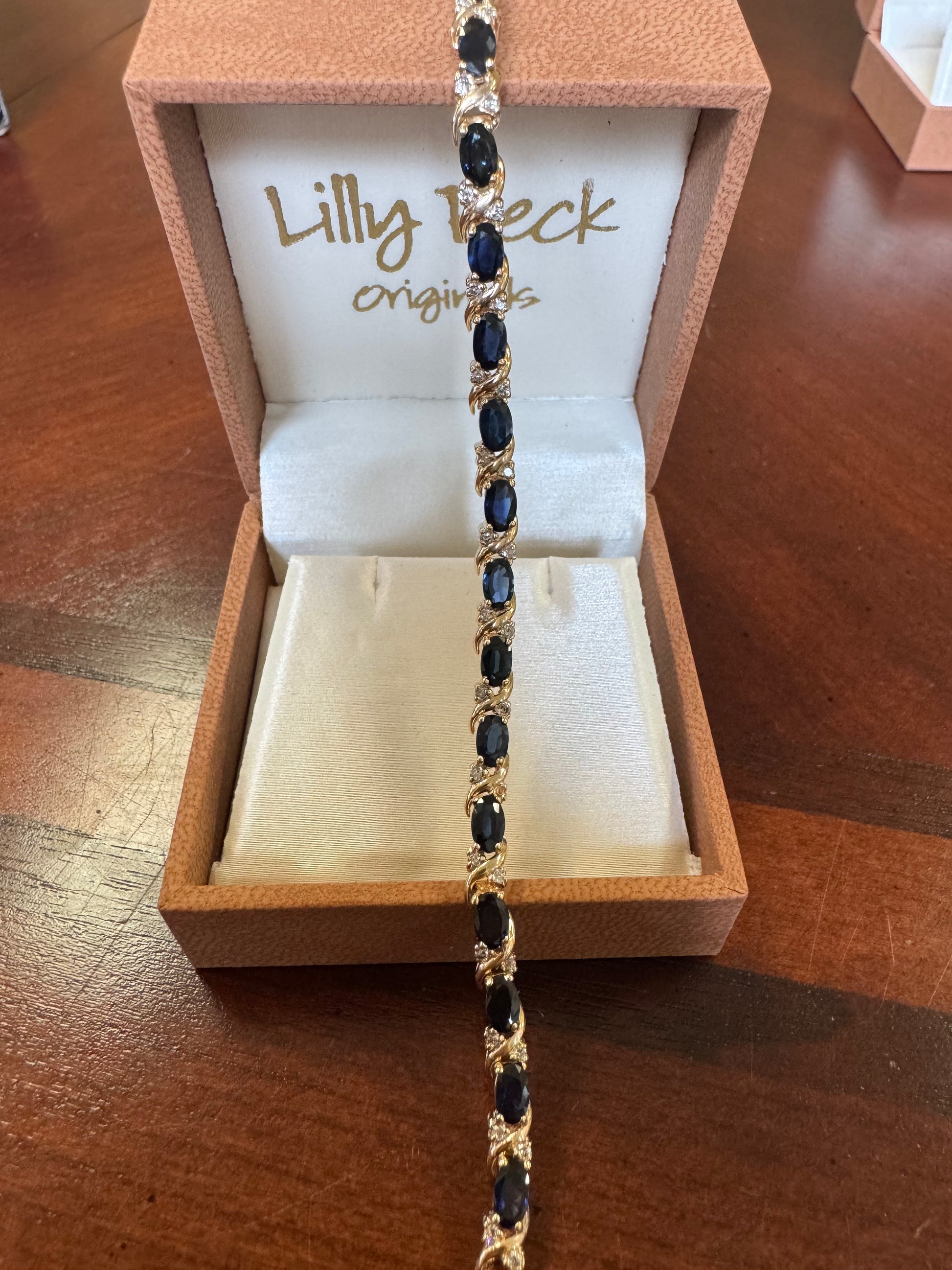 1/3ct of diamonds with oval sapphires in 14k yellow gold 7” B06